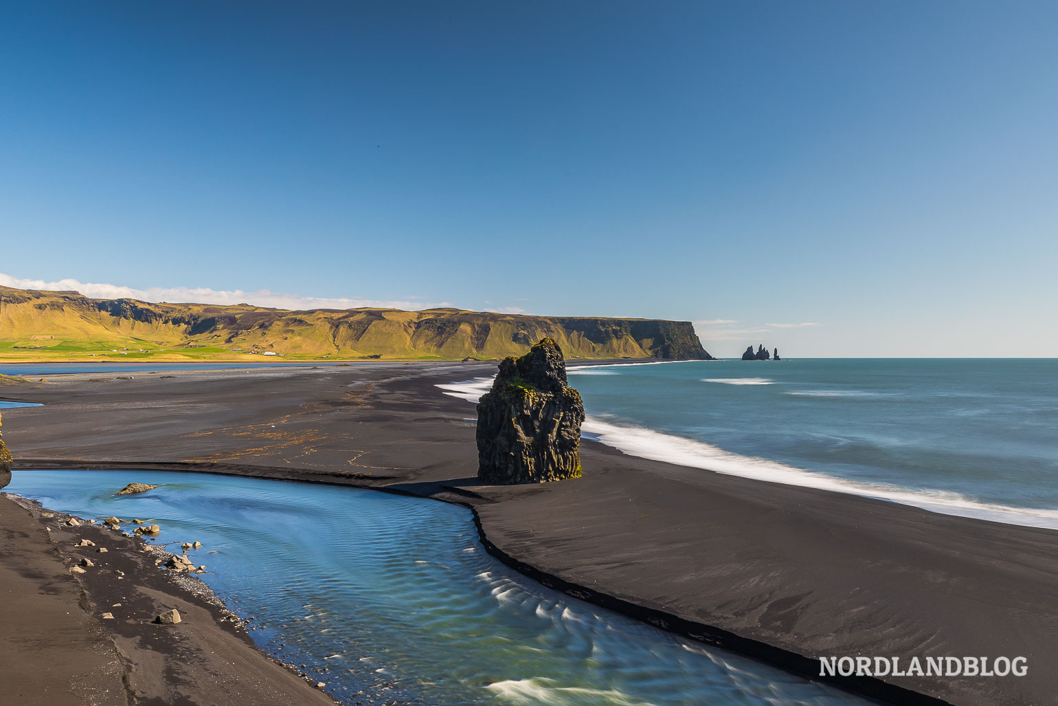 [su_panel background=”#444e58″ color=”#ffffff” border=”1px solid #ffffff” shadow=”0px 0px 0px #eeeeee” text_align=”center” url=”https://www.nordlandblog.de/wohnmobil-stellplatz-island-campingplatz-in-vik-i-myrdal/”][su_icon_text color=”#ffffff” icon=”icon: search-plus” icon_color=”#a6e4ff” icon_size=”20″]Klicke hier für alle weiteren Informationen / Fakten / Bilder und die detaillierte Landkarte von diesem Wohnmobil-Stellplatz[/su_icon_text][/su_panel]Am nächsten Morgen gehen wir noch in den großen Krónan Supermarkt im Ort, um vielleicht die ein oder andere Delikatesse zum günstigen Preis zu erwerben – was beim allgemeinen Preisniveau in Island eine echte, aber auch lohnenswerte Herausforderung ist. Dermaßen erfolgreich auf- und ausgerüstet, machen wir uns wenig später auf den Weg, um die Attraktionen in der Umgebung zu erkunden. Einen ersten Blick auf die weltweit populären Felssäulen Reynisdrangar, die hier an der Küste seit Urzeiten den Gewalten trotzen, konnten wir bereits vom Strand in Vik genießen. Heute möchten wir diese bizarren Formationen vom populären Strand Reynisfjara Beach auf der anderen Seite der Berge betrachten.