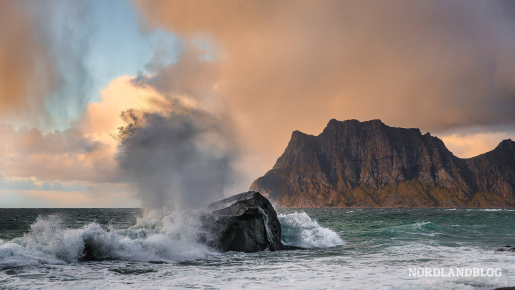 - Am Strand von Ramberg (Lofoten) tost die Brandung