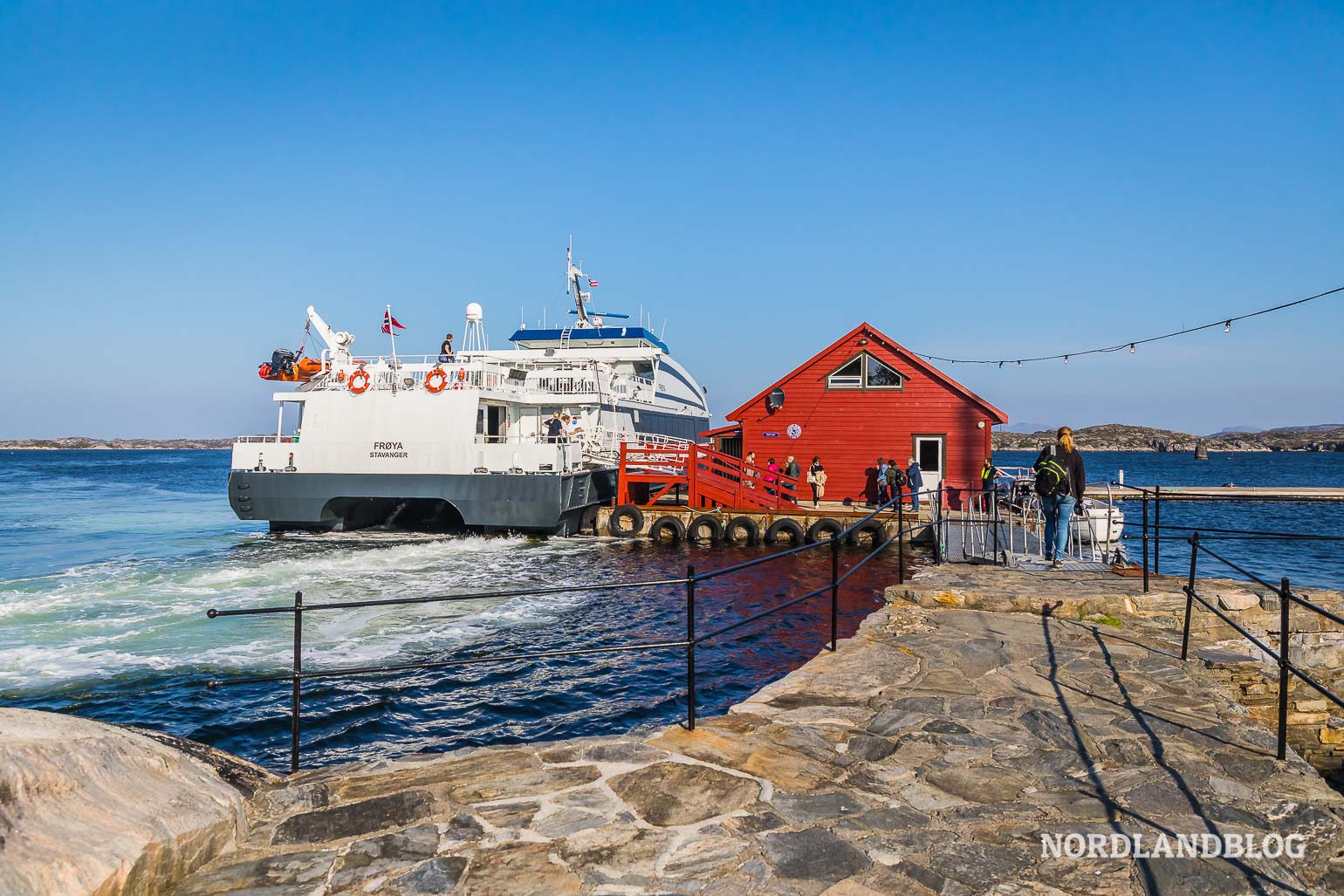Die Insel Fedje ist eine Perle vor der norwegischen Küste. Es gibt zwischenzeitlich eine tägliche Verbindung mit dem Schnellboot von Bergen dorthin. Ein Ausflug der sich wirklich lohnt. Wir machen auf unserer Tour aber einen Abstecher zum Fähranleger Sævrøy Fergekai, um von dort mit der Fähre überzusetzen. Wir empfehlen dabei übrigens, das Auto am Fähranleger zu parken und die 30-minütige Überfahrt mit der MS “Fedjefjord” als Fußgänger zu buchen. Fedje ist ohnehin nicht groß und so ist es auch noch preiswerter.