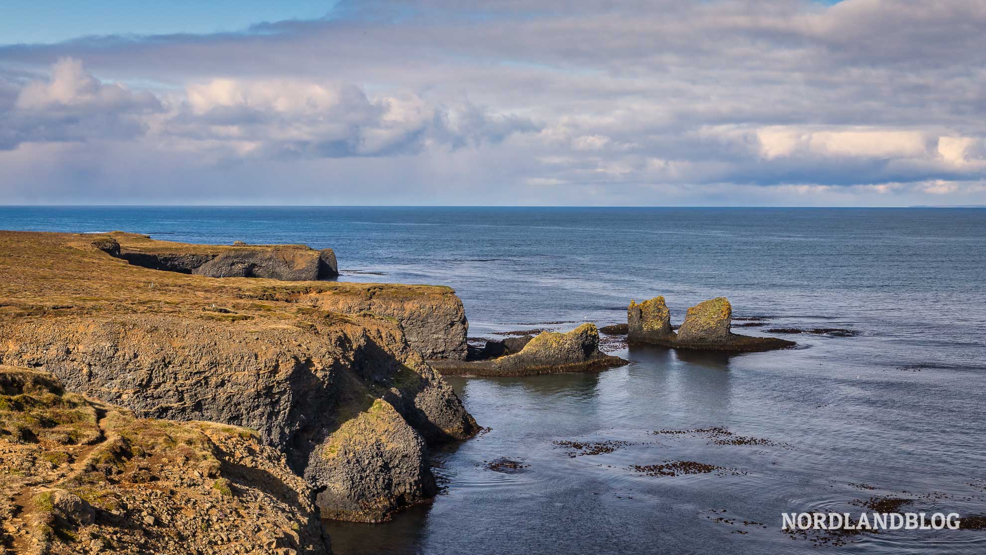Die Abgeschiedenheit dieser Region im Norden von Island wird noch verstärkt, durch die vereinzelten Bauernhöfe. Diese schmiegen sich in die kleineren, fruchtbaren Täler. Sie könnten sicher unendliche Geschichten von einem Leben voller Entbehrungen, Herausforderungen und Einsamkeit erzählen. Wir folgen dem markierten Weg am Stand entlang und über einige der Ländereien zurück zu unserem Kastenwagen. Dort angekommen kochen wir uns erst einmal einen Kaffee, bevor wir nach Porshöfn aufbrechen. Auf dem Campingplatz in diesem alten Handelsort wollen wir die nächste Nacht verbringen.