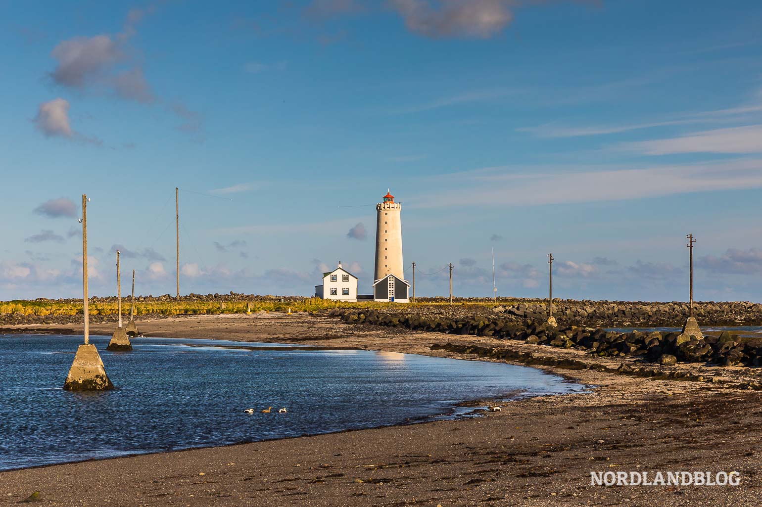Ebenso kann man von hier aus zum nahegelegenen Leuchtturm von Reykjanes oder auch zu den heißen Quellen im Thermalgebiet Gunnuhver gehen. Die Umgebung wirkt hier in gewisser Weise etwas surreal – der alte Leuchtturm hoch über dem Meer und dazu das heiße brodelnde Wasser sowie der Dampf, der mächtig nach Schwefel stinkt.